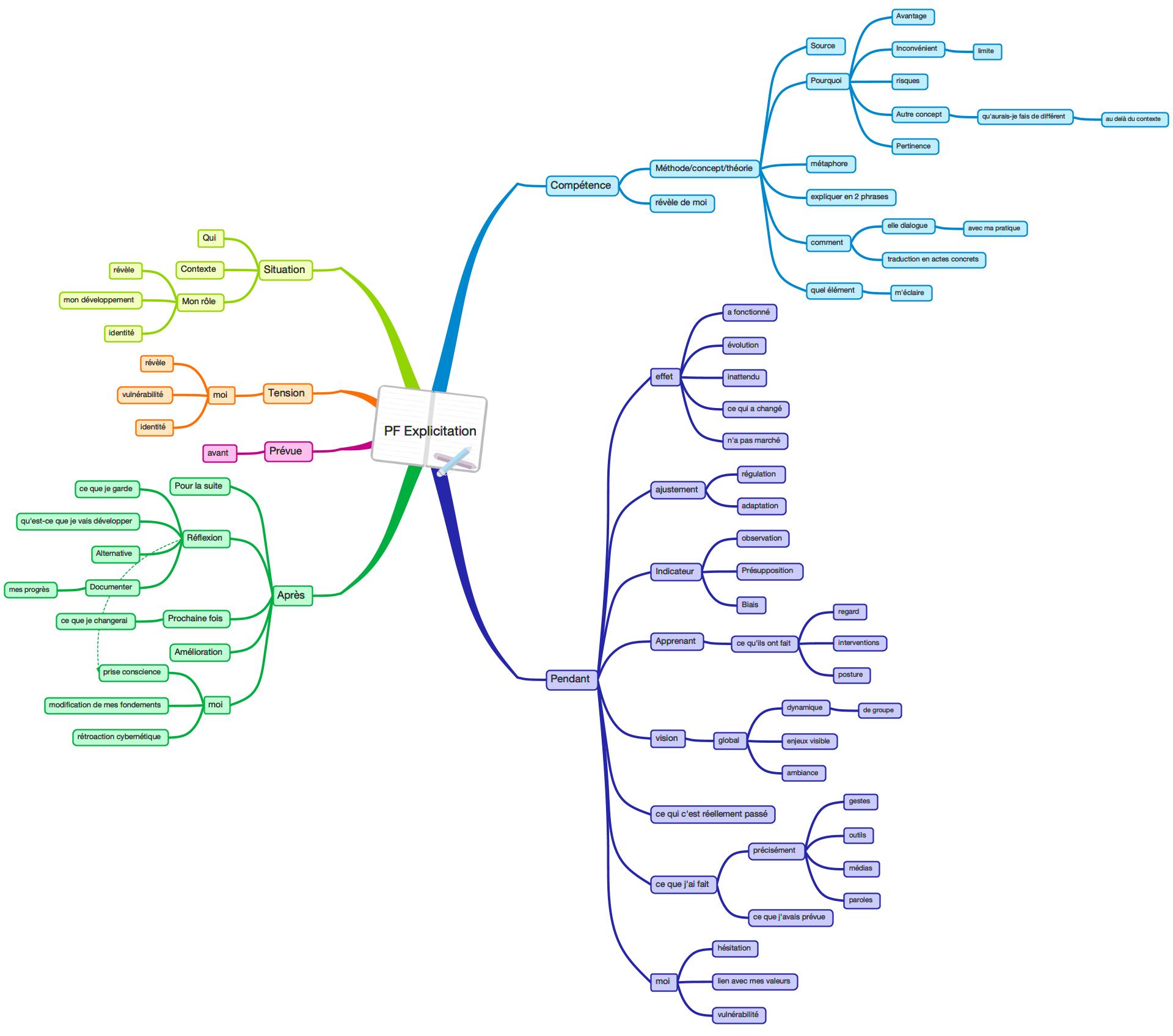 **Questions directrices :** - Quelle théorie/concept est pertinent ici (Knowles, Bourgeois, Bloom, etc.) ? - Pourquoi ce choix plutôt qu'un autre ? - Quel élément spécifique de la théorie m'éclaire ? - Comment cette théorie dialogue-t-elle avec ma pratique ? - Quelles sont les limites de cette théorie pour ma situation ? - Qu’est-ce que j’avais prévue - Qu’est-ce qui s’est passé - Qu’est-ce que ça dit pour la suite - Quels sont les indicateurs observables de m’adapter à la situation - Pourquoi j’ai appliqué cette façon, qu’est-ce qui n’a pas marché, qu’est-ce que j’ai changé, quel a été l’évolution, que pourrais-je faire la prochaine fois ? - Quelles hésitations ou vulnérabilité ont émergé ? - j’ai fait cela pourquoi ce choix, quels risques associés, quels effet inattendu, quel biais cognitif impliqué. - pour chaque outil didactique lister avantage et inconvénient, quel limite - Démontrer ses compétences (ce que j’ai fait dans cette situation pourquoi et si autre contexte qu’est-ce que je ferais différemment et pourquoi) au delà de notre contexte professionnel passé ou actuel. - Démontrer une compétence et pourquoi j’utilise tel méthode et comment je l’utilise. - Comment je justifie que je le fais comme ça. - Ajouter la réflexion après