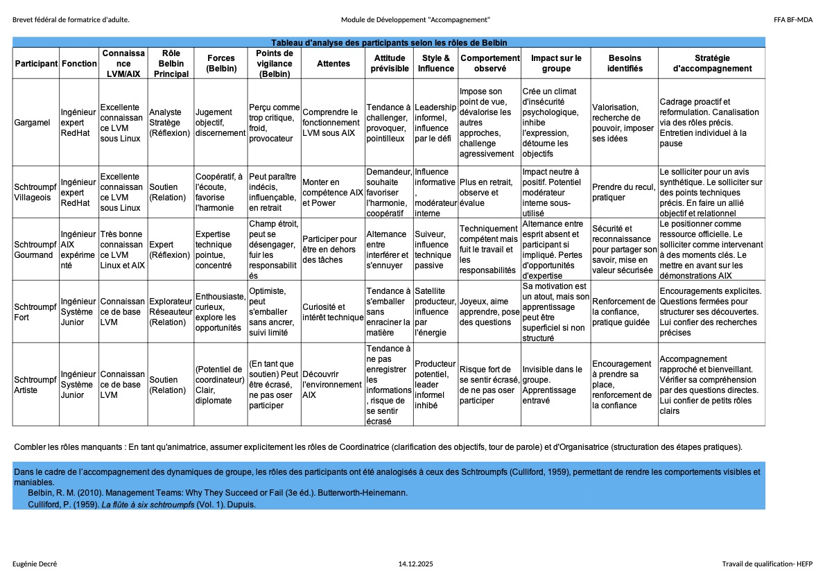 Analyse de rôle MDA F4 avant une session de formation